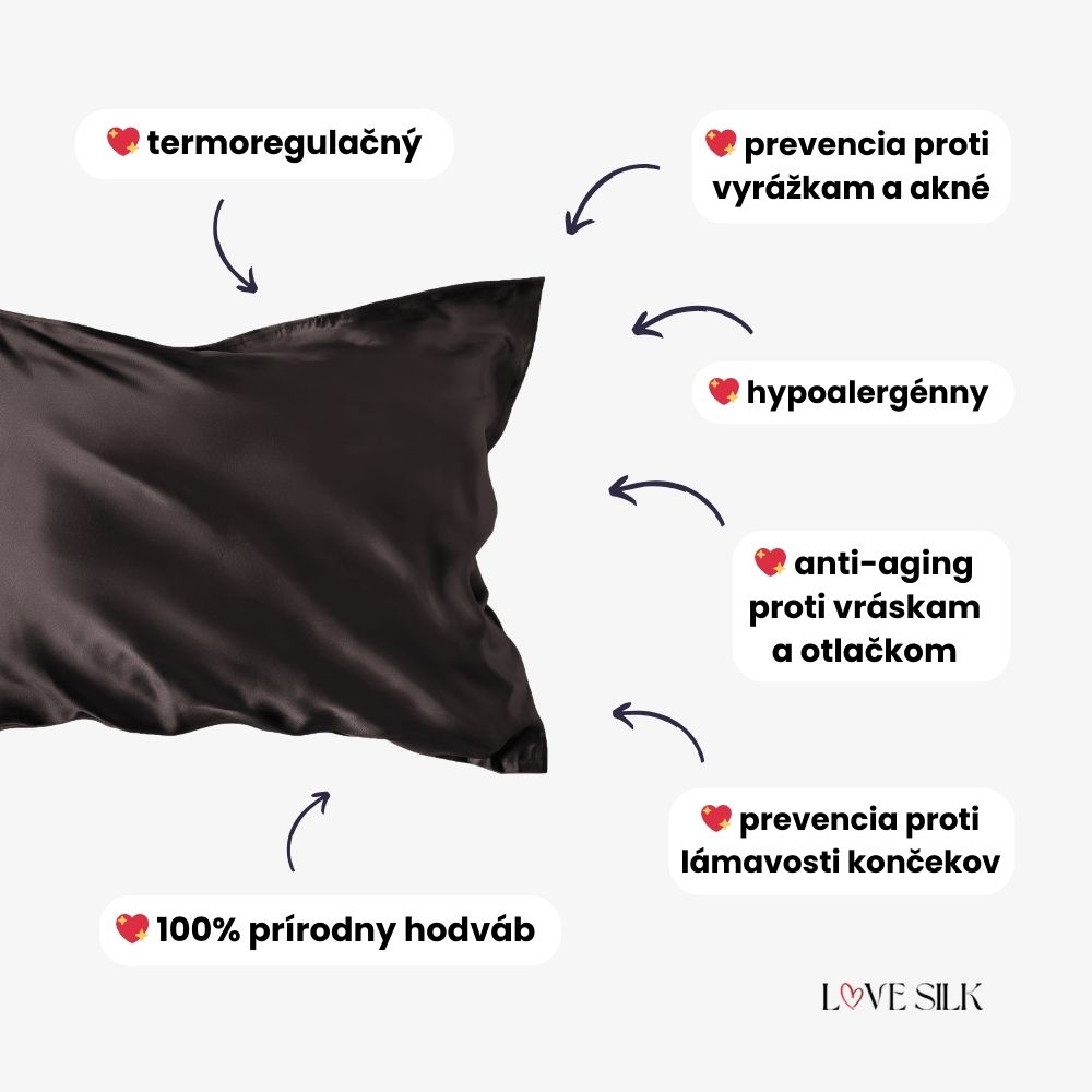 Morušový hodváb je hypoalergénny, antibakteriálny a prirodzene odolný voči prachu a roztočom. Vďaka OEKO-TEX® certifikácii neobsahuje žiadne dráždivé chemikálie. Pleť zostáva čistá, bez podráždenia a zlepšuje sa jej rovnováha. Mnoho zákazníkov s citlivou pokožkou uvádza viditeľné zlepšenie už po pár nociach.