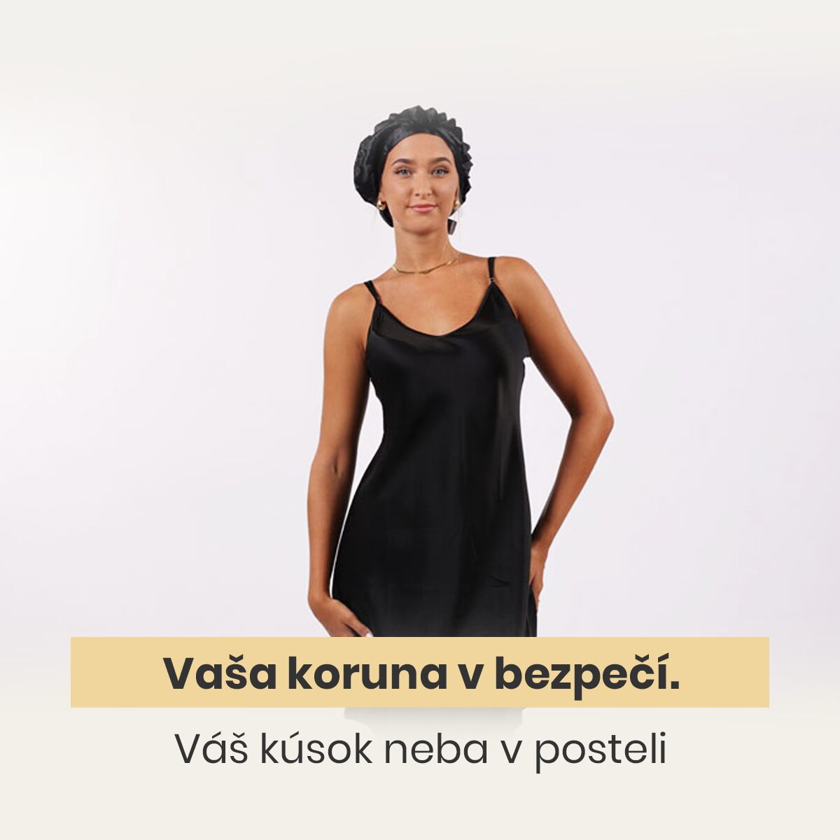 Hodvábny turban minimalizuje trenie vlasov.