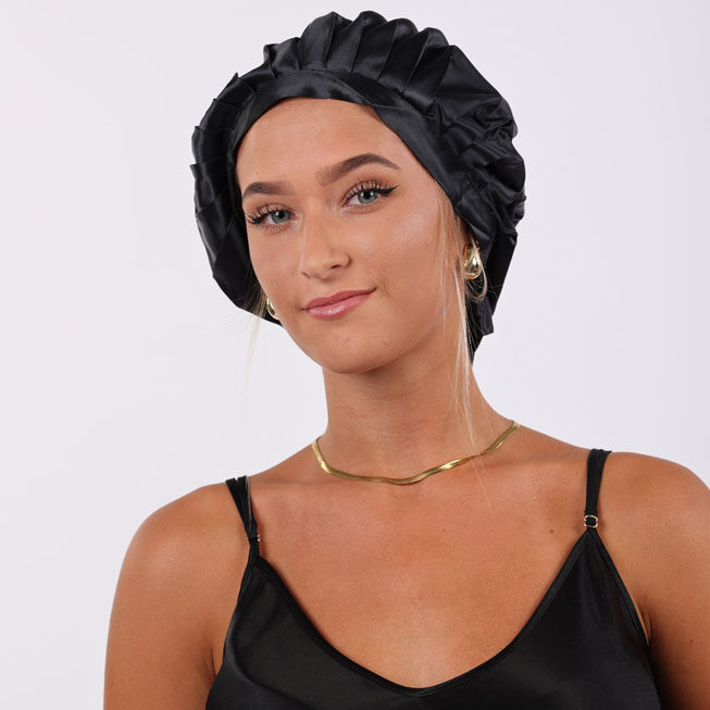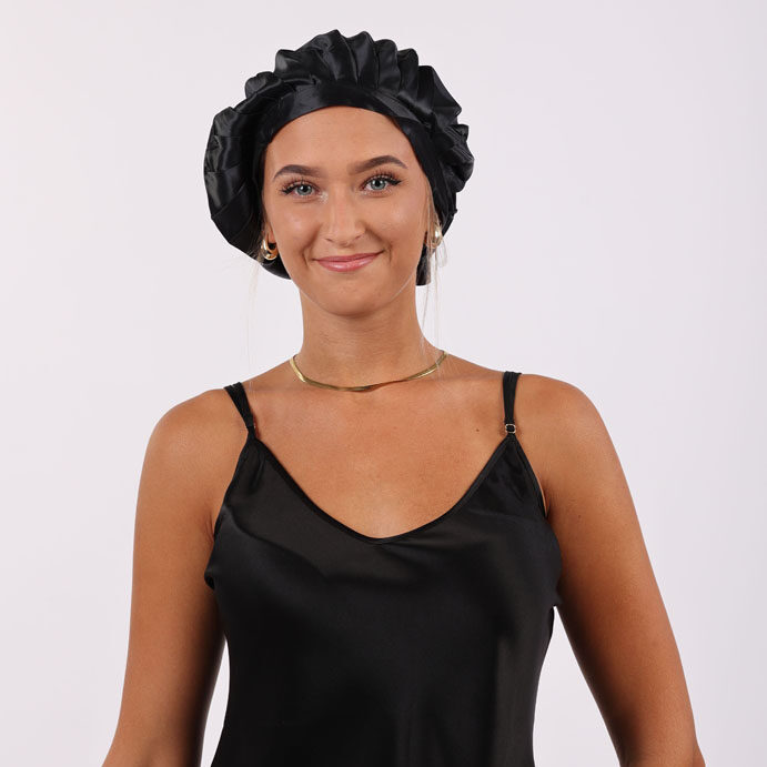 100 % prírodný morušový hodváb (22 Momme, Grade 6A) je synonymom luxusu a šetrnosti. Vlasy ostávajú hydratované, hladké a lesklé, zatiaľ čo pokožka hlavy voľne dýcha. Odtieň Čierny ónyx pôsobí zmyselne a elegantne a dokonale vám ochráni vás účes podčas noci.
